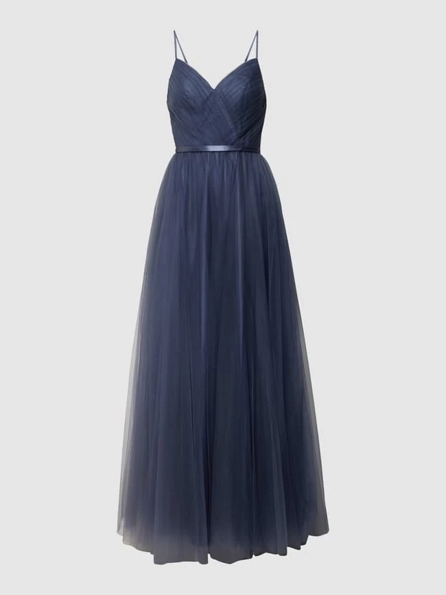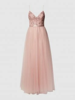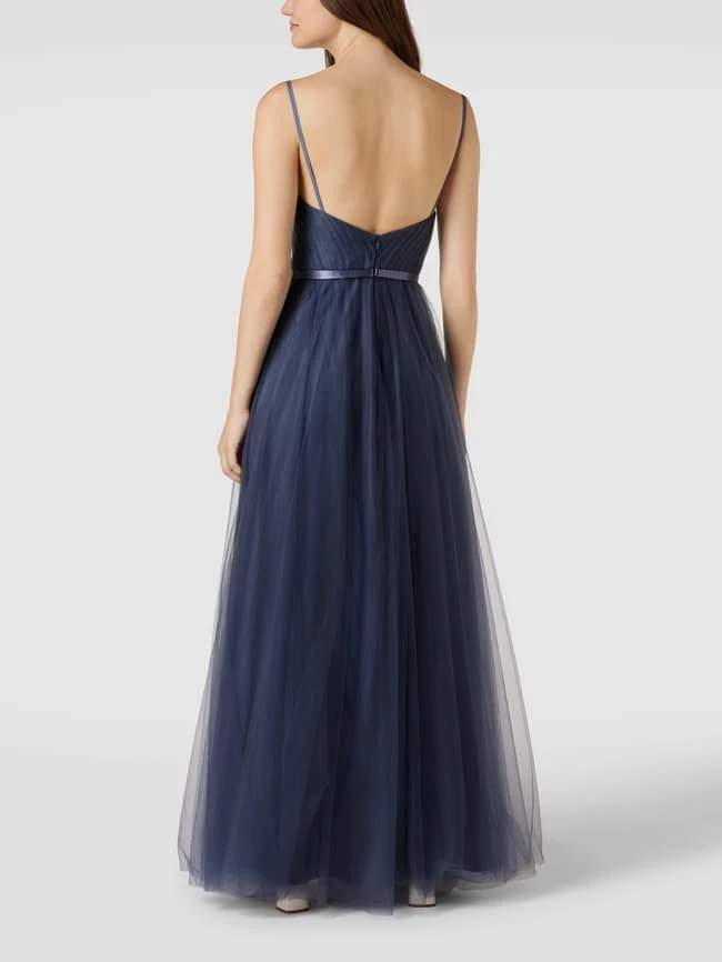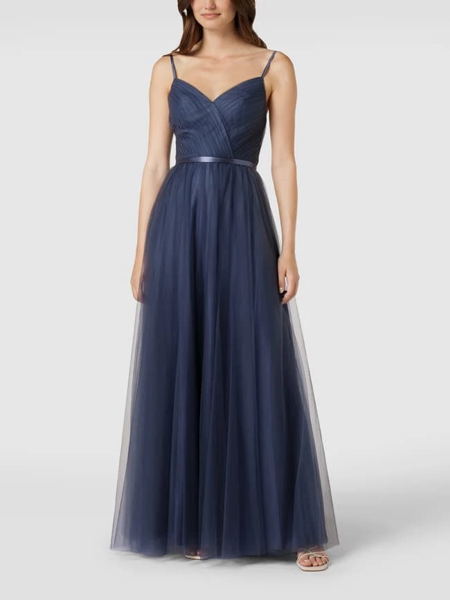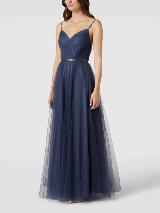 Das Abendkleid von LAONA ist aus strapazierfähigem Material gefertigt und tailliert geschnitten. Es kommt mit Herz-Ausschnitt, Layer-Optik, ausgestellter Rockpartie und Spaghettiträgern.