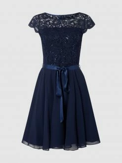 Swing Cocktailkleid Aus Floraler Spitze Und Chiffon – Marineblau