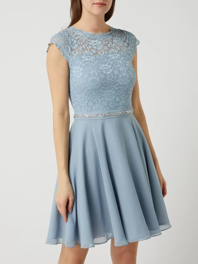 Das Cocktailkleid von SWING ist aus robustem Material gefertigt und leicht tailliert geschnitten. Es kommt mit Taillenpasse aus floraler Spitze, blickdichtem Unterrock und Rundhalsausschnitt.