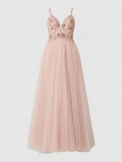 Das Abendkleid von unique ist aus strapazierfähigem Material gefertigt und tailliert geschnitten. Es kommt in Maxilänge und schimmernder Optik, mit Spaghettiträgern und V-Ausschnitt.